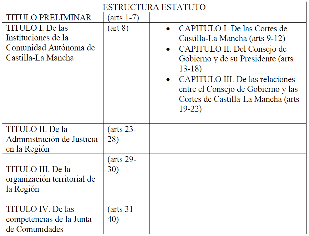 1. El Estatuto de Autonomía de Castilla La Mancha.