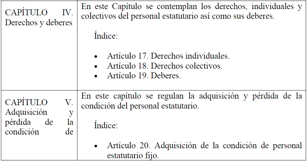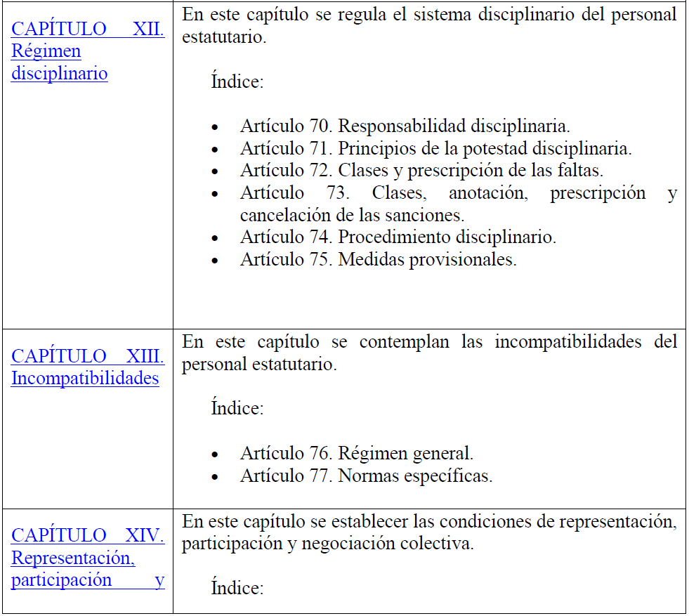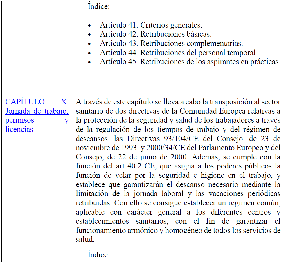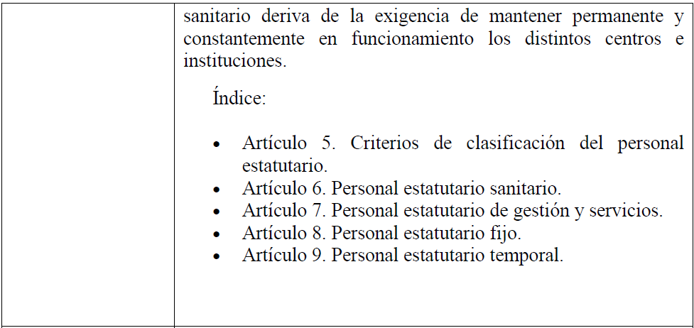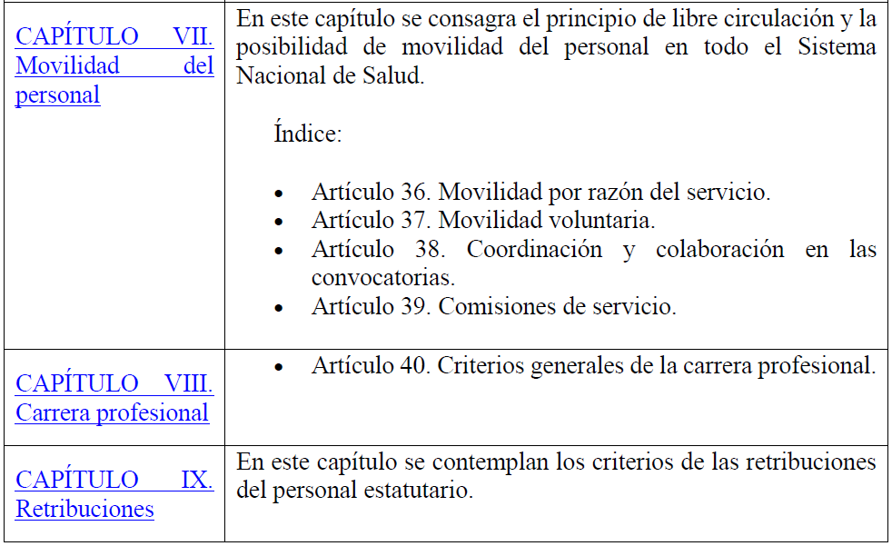 o Actualización de la normativa del personal estatutario para adaptarlo a las características específicas del personal sanitario.