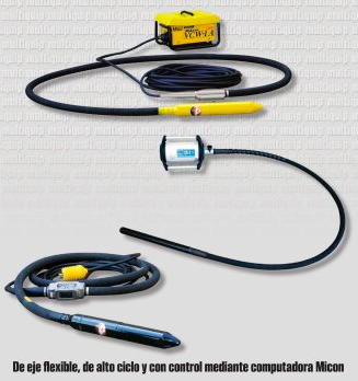 - Vibrador de Encofrado: Posee una unidad vibrante que se aplica en las paredes del encofrado para transmitir vibraciones a la masa del hormigón, con una frecuencia de 3.000 a 12.000 RPM.