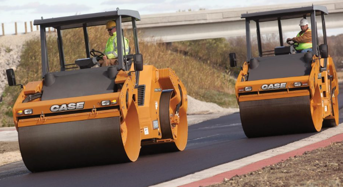 - Apisonadora en Tándem: Dispone de dos rodillos, uno anterior y otro posterior, de la misma anchura pero de diferente diámetro. Por lo general, el cilindro anterior es más pequeño que el posterior.