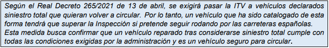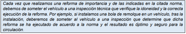 a) Tras un accidente u otra causa, cuando el vehículo haya sufrido un daño importante que pueda afectar a algún elemento de seguridad de los sistemas de dirección, suspensión, transmisión o frenado, o al bastidor o estructura autoportante en los puntos de anclaje de alguno de estos órganos, deberá ser presentado a inspección antes de su nueva puesta en circulación, en la que se dictamine sobre la aptitud del vehículo para circular por las vías públicas.