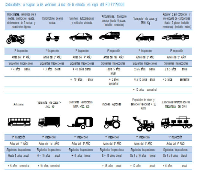 TIPOS DE INSPECCIONES. FECHAS Y FRECUENCIA SEGÚN LOS TIPOS DE VEHÍCULOS.