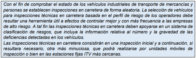 1. Inspecciones técnicas como resultado de inspecciones técnicas en carretera, en los supuestos previstos por el Real Decreto 563/2017, de 2 de junio, por el que se regulan las inspecciones técnicas en carretera de vehículos comerciales que circulan en territorio español.