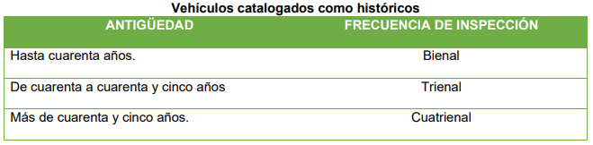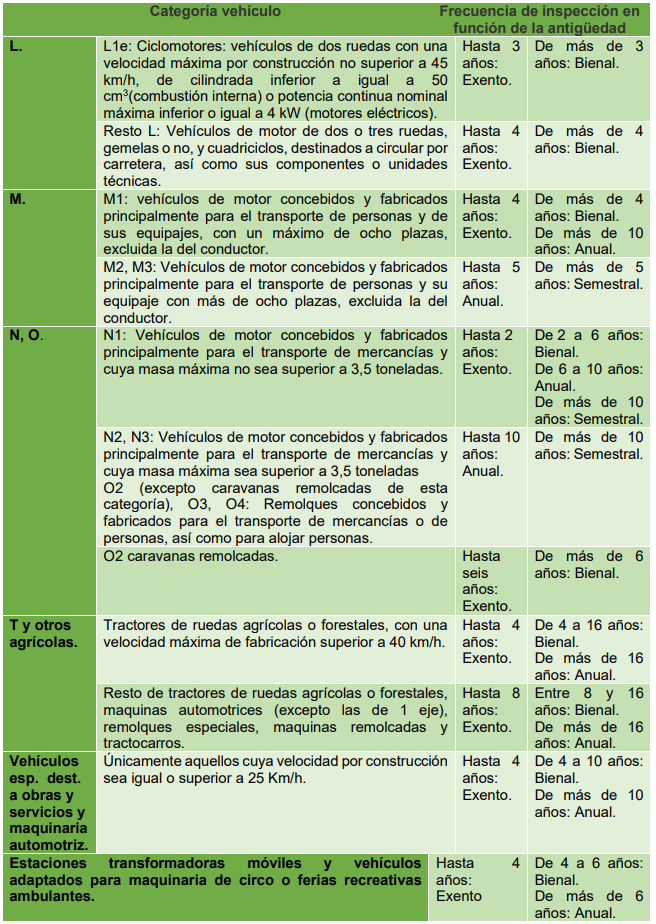 1. La inspección técnica periódica de los vehículos deberá efectuarse con la siguiente frecuencia: