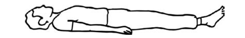 El enfermo se halla en decúbito lateral izquierdo con el muslo derecho flexionado brazo derecho hacia delante. La cabeza está girada lateralmente.