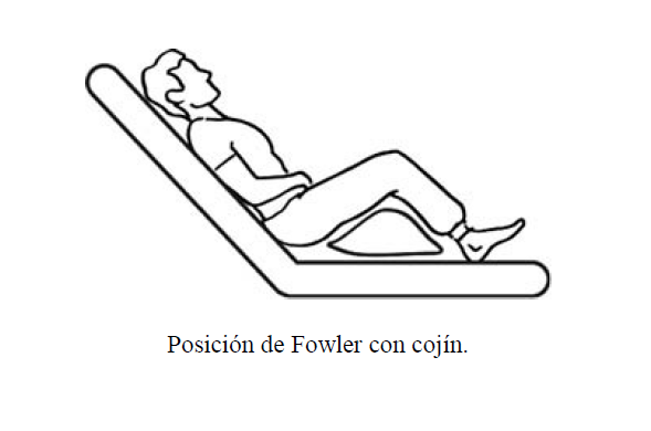 También se modifica la posición de Fowler, cuando el paciente una vez sentado se inclina y reposa sobre una mesa de cama o varios almohadones.