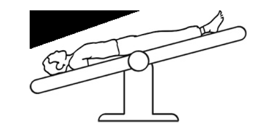 Se logra generalmente colocando unos tacos en las patas de la cabecera de la cama suele ponerse una tabla en los pies de la cama con objeto de que no se deslice el paciente. El enfermo está inclinado en decúbito supino con la cabeza a un nivel superior que los pies.