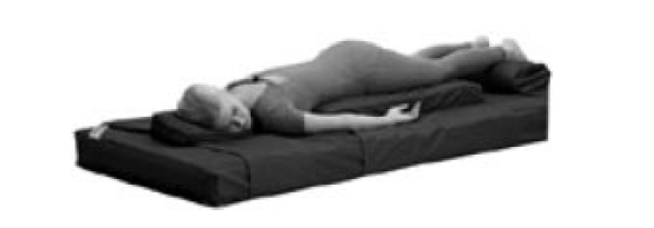– Tronco: para aliviar la presión sobre el tórax y abdomen pondremos dos rodillos almohadillados debajo del tórax a la altura de las axilas y otros dos a nivel de las palas ilíacas (estos últimos no deben comprimir los vasos femorales). El rodete debería formarse doblando paños no arrugados. Los requisitos de un buen rodete axilar serían: