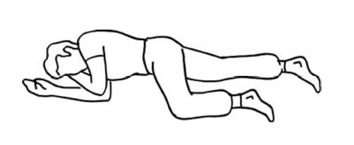 Las rodillas estarán ligeramente separadas y los muslos perpendiculares a la cama, la cabeza estará vuelta hacia un lado y, los miembros superiores colocados en la forma que desee el paciente. Esta posición se utiliza para exámenes rectales, fundamentalmente. En esta posición, hay que prestar especial atención al paciente, por resultar una posición bastante humillante para él.