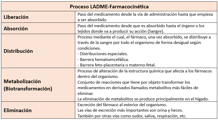 • Farmacocinética: Examina las etapas del proceso de un fármaco en el organismo, que incluyen su liberación, absorción, distribución, metabolismo y eliminación. Este proceso se resume en el acrónimo LADME.