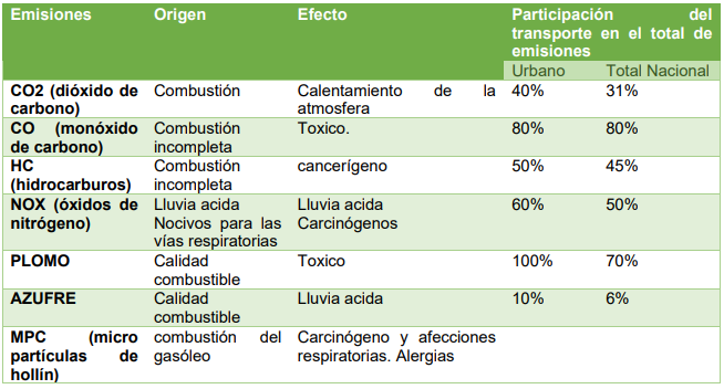 Como vemos los gases que tienen un efecto adverso en el medio ambiente son el CO2, por el efecto de calentamiento global que produce y los contaminantes declarados como tóxicos o nocivos, que aun cuando su emisión es muy pequeña, debido a la gran cantidad de automóviles que los vierten, hace que la concentración en la atmósfera sea significativa. Estos son: