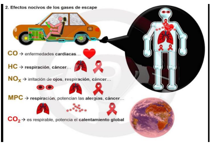 Los gases de escape tienen importantes efectos nocivos sobre el ser humano: