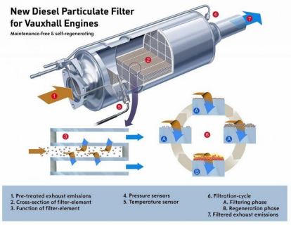 Filtro de partículas suele estar ubicado debajo del coche, cerca del motor y antes del tubo de escape. Éste filtra el hollín generado en la combustión a través de pequeñas