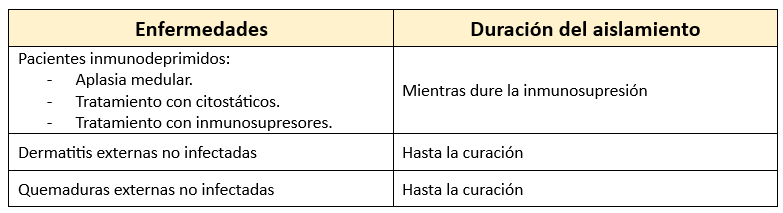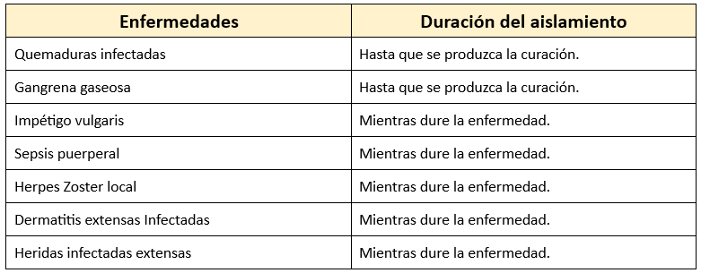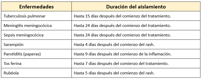 Enfermedades que requieren aislamiento estricto: