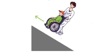 Para bajar la rampa, en primer lugar, irá el celador transportando al paciente también de espaldas. Caminara el celador despacio y hacia atrás con mucho cuidado, sujetando el avance de la silla.