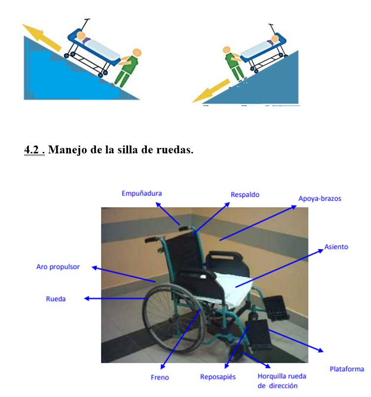 4. Manejo y utilización de material auxiliar: camas, camillas, grúas, sillas, sujeciones y otros.
