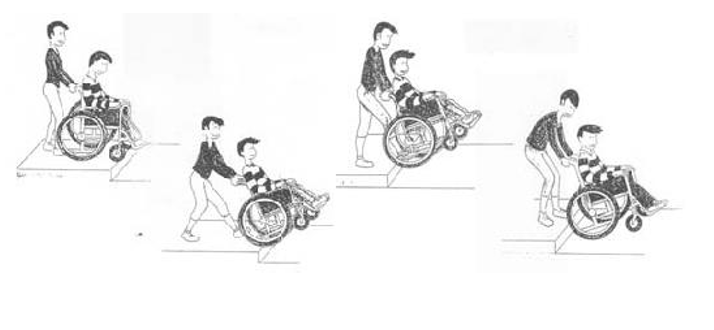 - Hacer bajar la silla suavemente sobre cada uno de los escalones.