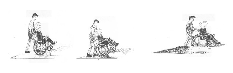 - Hacer subir la silla levantando las ruedas grandes traseras, rozando la acera.