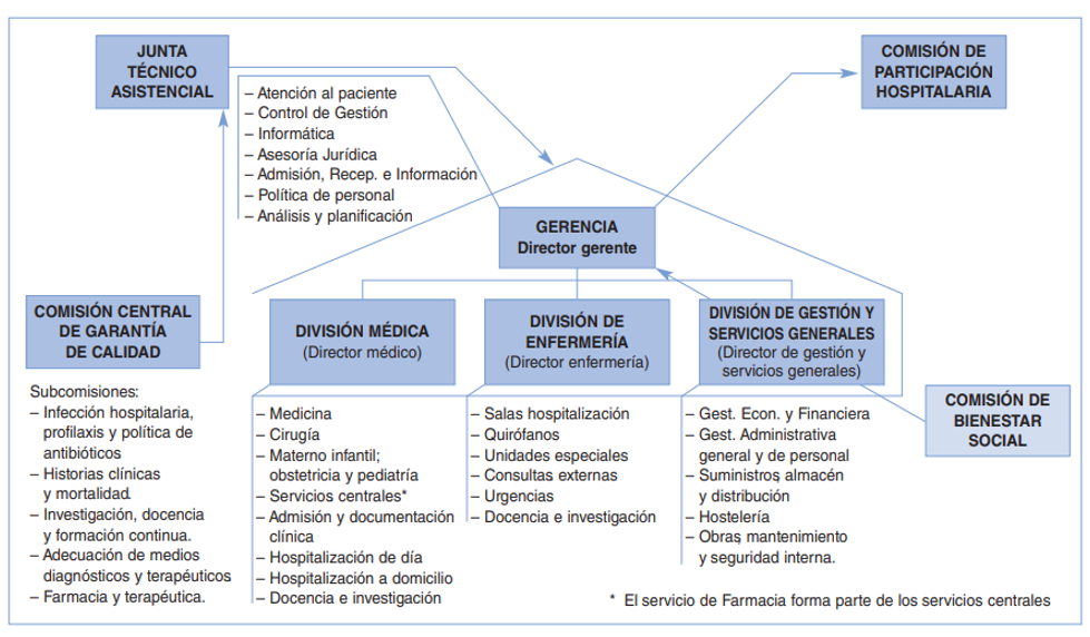 Antes de adentrarnos en el contenido teórico de este apartado, es conveniente tener presente el siguiente organigrama hospitalario: