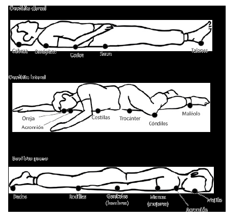 Las zonas de riesgo de aparición de una UPP varían según la posición que adopte el paciente.