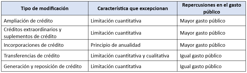 Durante el año presupuestario también pueden surgir necesidades no previstas al momento de elaborar y aprobar el presupuesto. Por lo tanto, si surge la necesidad de realizar un gasto para el que no se cuenta con una dotación presupuestaria suficiente, es necesario modificar los créditos iniciales. Esta modificación se realiza mediante diferentes mecanismos.