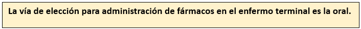- La vía de administración de elección es la que mejor tolere el paciente, habitualmente la oral, que en el 90% de los casos se puede mantener hasta las últimas 24 horas de vida.