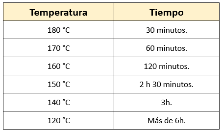Tiempo Necesario para la Esterilización en el Horno de Pasteur o la Estufa Poupinel