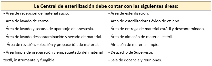La extensión, dotación de personal y equipo de la central de esterilización estarán en función de la actividad quirúrgica, el número de quirófanos, partos y camas disponibles en el hospital.